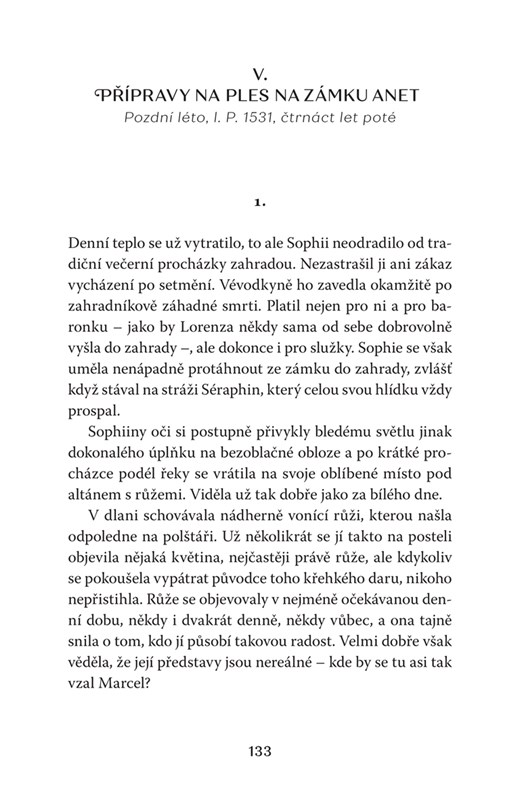 Tajemství, nečekaná láska, intriky, ženský půvab a mužské rytířství – píše se rok 1531 a na francouzském zámečku Anet se za dramatických okolností objeví mlčenlivá kráska. Její příchod zasáhne do života majitelky zámku i celého dvora. Záhadná dívka je v ohrožení života, o své minulosti nesmí prozradit ani slovo, a proto předstírá němotu. Kam se poděl hrdinný rytíř, který ji zachránil před bandity? Co se stalo s jejími vzácnými klenoty? A kým ve skutečnosti neznámá žena je? Příběh plný tajemství se začíná rozplétat… Úspěšná romanticko-historická sága slovenské spisovatelky Martiny Monošové se představuje českým čtenářům.