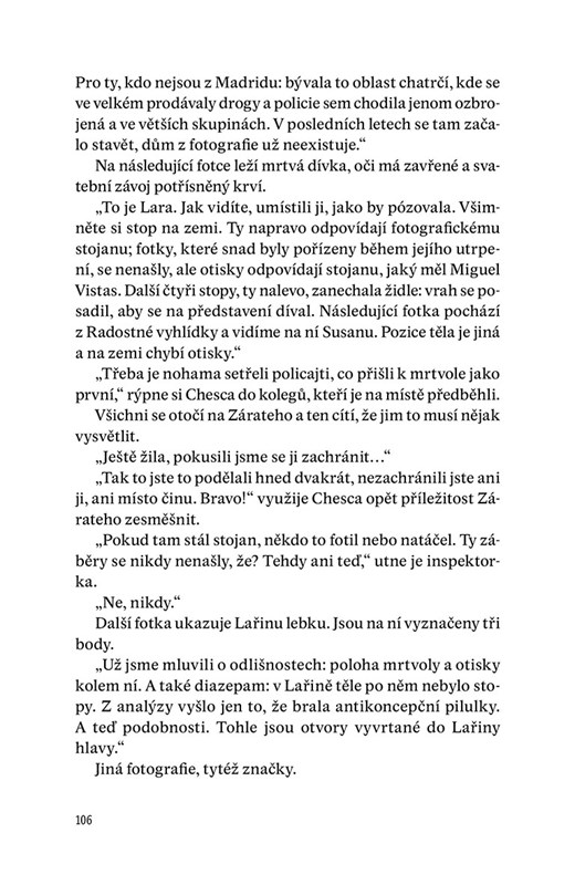 Seznamte se, Elena Blancová – přes den policejní inspektorka pronásledovaná minulostí, v noci femme fatale se slabostí pro grappu a karaoke. Se svým týmem musí vyřešit nebývale brutální vraždu ženy, která měla těsně před svatbou. K podobně rituálnímu zločinu došlo i před sedmi lety, jenže pachatel si dosud odpykává trest. Existují tedy dvě možnosti: buď má následovníka, anebo je uvězněn nevinný. Ve strachem svíraném Madridu to začíná vřít a Elenu čeká nejedna horká chvilka.