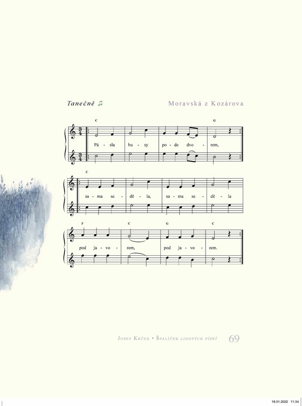 Líbí se vám písničky? Hrajete na hudební nástroj a rádi si zazpíváte? Potom je Špalíček právě pro vás! Padesát nejznámějších českých a moravských lidových písní s notami vybral a upravil vynikající hudebník a skladatel Josef Krček. Ilustracemi je vyzdobil Jindra Čapek. A tak hrajte – na flétničky, klavír, kytaru, akordeon… nebo také na hřeben či bubnujte na hrnce. Se zpěvníkem vám to půjde určitě snadno a dobře. A hlavně z plna hrdla zpívejte, ať už sami, nebo s přáteli. Kdo si zpívá, má se dobře na světě!
