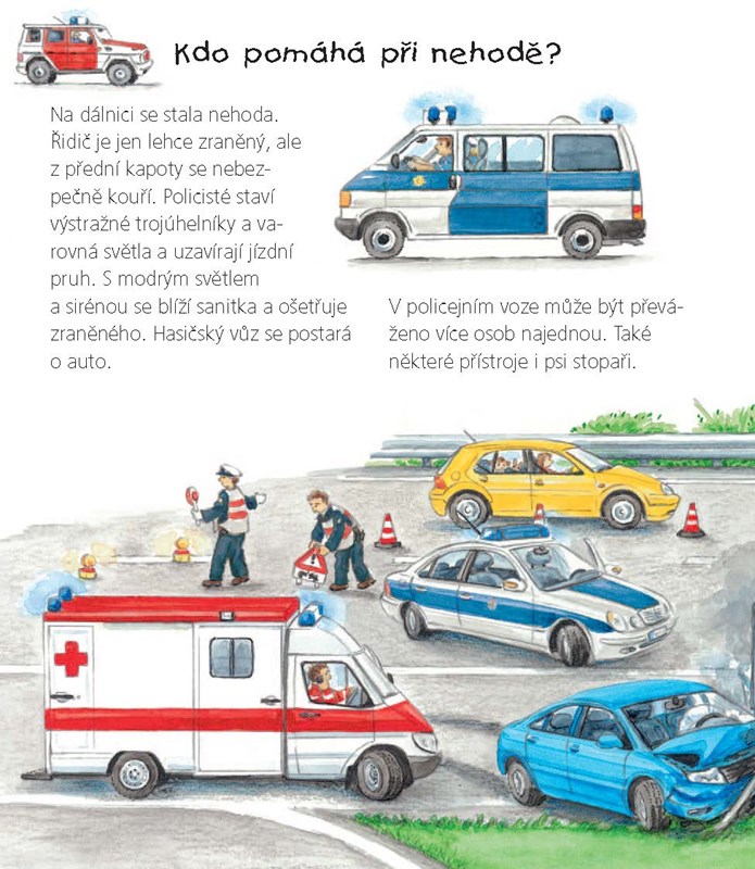 Den za dnem, stránku za stránkou a obrázek za obrázkem poznáváme a objevujeme svět. Tentokrát v naučné řadě pro nejmenší se děti seznámí s vozidly, která mohou potkat na silnici, dovědí se, kdy musí auto k čerpací stanici nebo kdo pomáhá při automobilové nehodě. Poznají také, jak funguje popelářské auto nebo jaká vozidla pracují na stavbě...