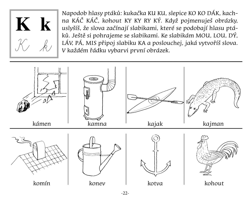 Soubor obrázků je určen dětem předškolního věku k rozvíjení řečových dovedností. Zásobu obrázkového a slovního materiálu lze využít ke zjištění vad výslovnosti a procvičení hlásky, kterou se dítě naučí pod odborným vedením v logopedické poradně. Hlásky jsou v knize seřazeny od jednoduchých ke složitým z hlediska vývojového a artikulačního.