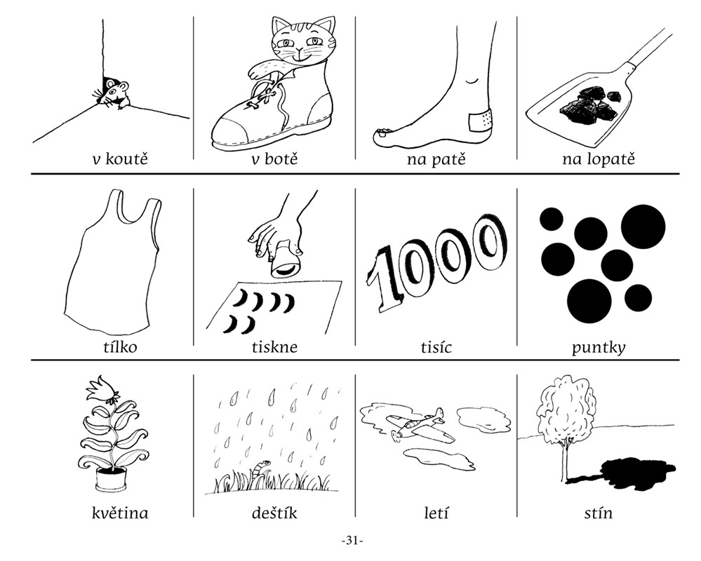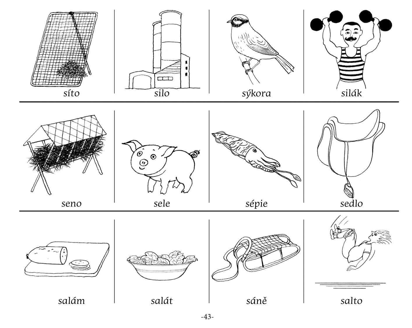 Ze souboru obrázků lze čerpat náměty k jazykovým hrám i pro děti, které umějí správně vyslovit všechny hlásky.