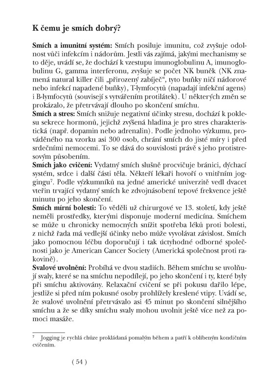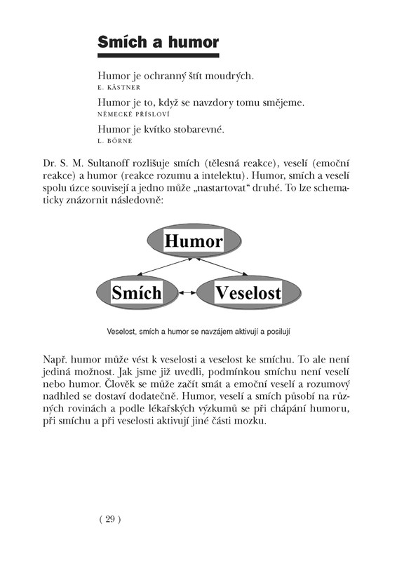 Úsměv ve správnou chvíli dokáže prolomit ledy v mezilidských vztazích. Často je to právě úsměv, který stojí na počátku přátelství, spolupráce nebo i manželství. Smích nejen stmeluje rodiny a pracovní týmy, ale také pronikavě ovlivňuje řadu tělesných funkcí a slouží tělu jako signál, že je možné se uvolnit. Smích je starší než řeč a je vrozený. O příznivých účincích smíchu na duševní i tělesné zdraví je přesvědčena řada lékařů v různých částech světa, kteří smích a humor systematicky využívají při léčbě. Jedná se tedy o téma, jemuž stoji zato věnovat pozornost a zabývat se jím do hloubky.