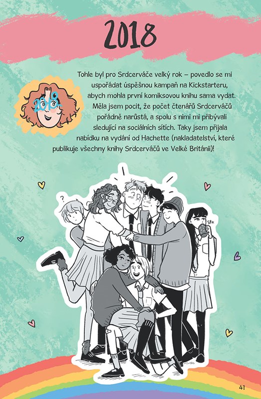 Celobarevná ročenka ke komiksům Srdcerváči je kniha plná exkluzivního obsahu z vesmíru Nicka a Charlieho – včetně dosud nezveřejněných ilustrací, speciálního mini komiksu, ohlédnutí za Alicinou tvorbou Srdcerváčů v průběhu let, profilů jednotlivých postav, zákulisních informací a taky náhledů do Alicina kreativního procesu. To všechno vypráví komiksová verze vaší oblíbené autorky.