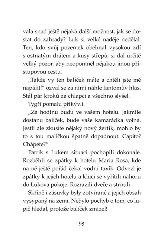 Klub Tygrů tráví prázdniny na řeckém ostrově Naxos. Na výletě lodí vyloví z vody tajemnou zprávu. Po...