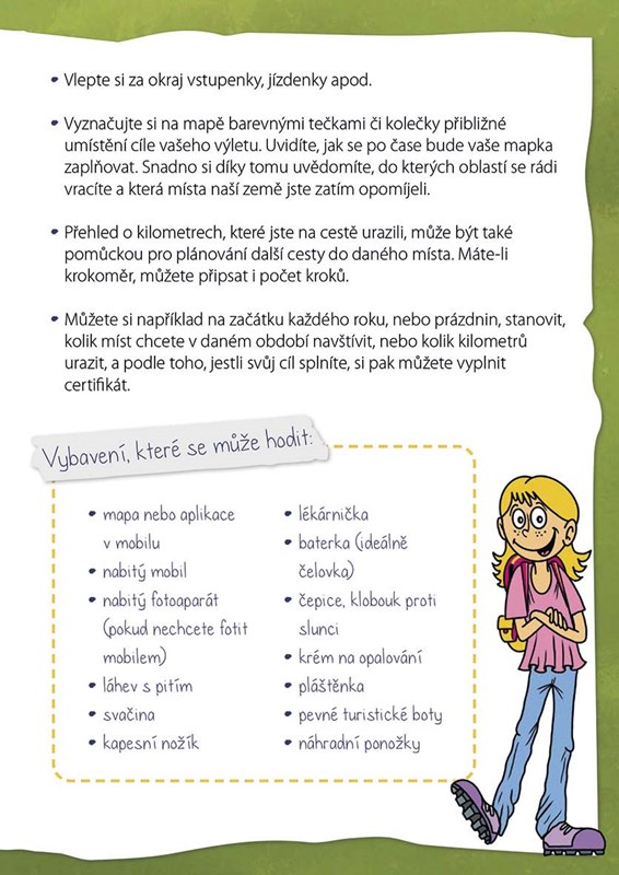 Najdeš v něm prostor pro vlastní zápisky, postřehy či dojmy. Nechybí místo na fotky či turistická razítka. Lovci kilometrů ocení certifikát zdatného cyklisty či turisty nebo přehlednou tabulku, do které mohou zapisovat vzdálenosti, které pokořili.