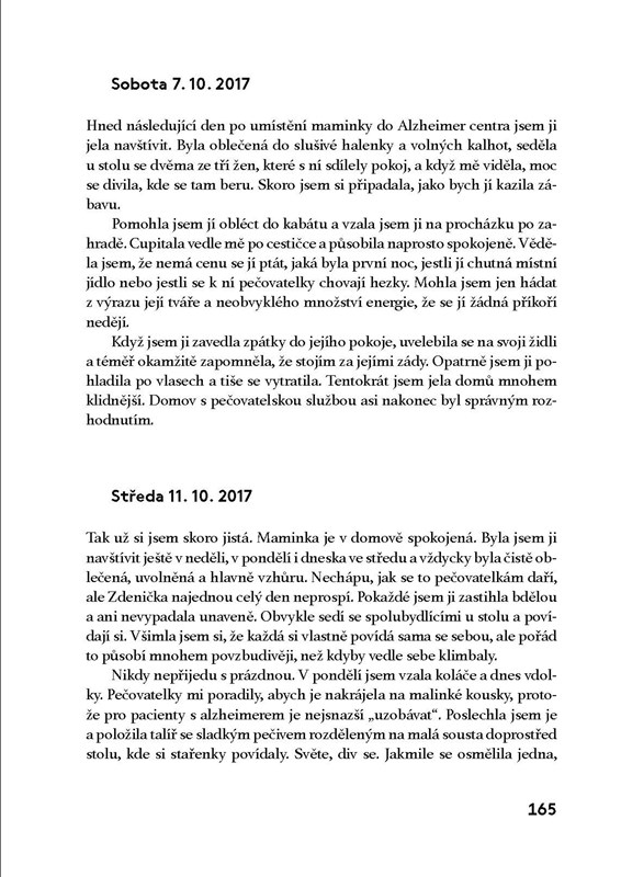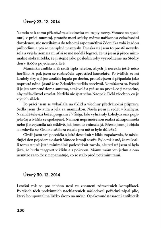 Zdravotní stav vaší maminky se začne nemilosrdně zhoršovat a vy se budete vzájemně čím dál víc odcizovat. Milovaná osoba se vám před očima změní v někoho zcela jiného, než koho jste tolik let znali. Vy se pro ni časem proměníte v bezejmennou tvář, kterou vůbec nepoznává. Přes fyzickou blízkost budete od sebe na míle daleko. Společné vzpomínky zůstanou jen ve vaší hlavě. A nejde s tím dělat absolutně vůbec nic.