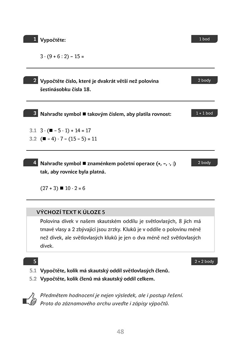 Důležitou součástí titulu je záznamový arch a pokyny pro jeho správné vyplnění. Pokud si je žáci nastudují dopředu, získají cenné minuty navíc, které se jim při řešení testu jistě budou hodit.