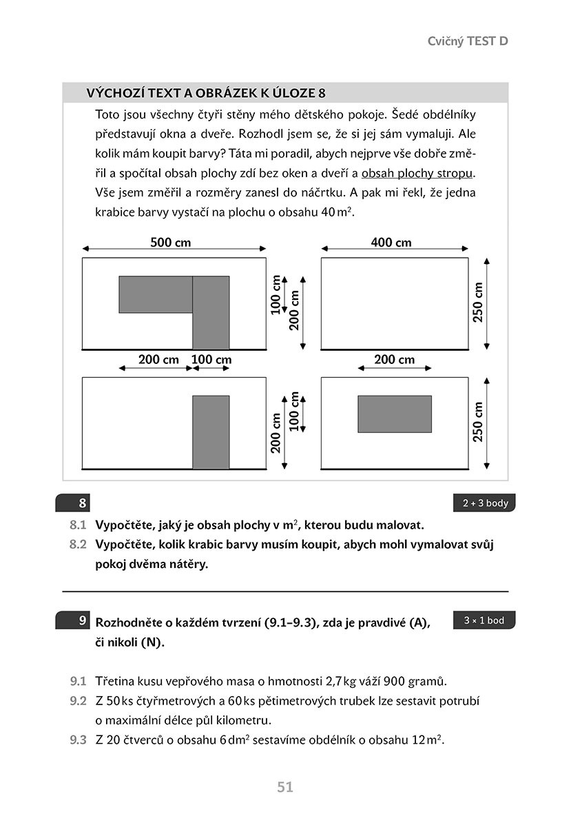 Publikace obsahuje 11 cvičných testů z matematiky. Jsou sestaveny tak, aby žáci získali ucelenou představu o tom, jak jsou otázky formálně koncipovány a uměli se v nich dobře orientovat. Naučí se pracovat s jednotlivými typy úloh a budou si moci vyzkoušet, jak by v testu uspěli. Vyhodnocení správných odpovědí naleznou v klíči správných řešení.