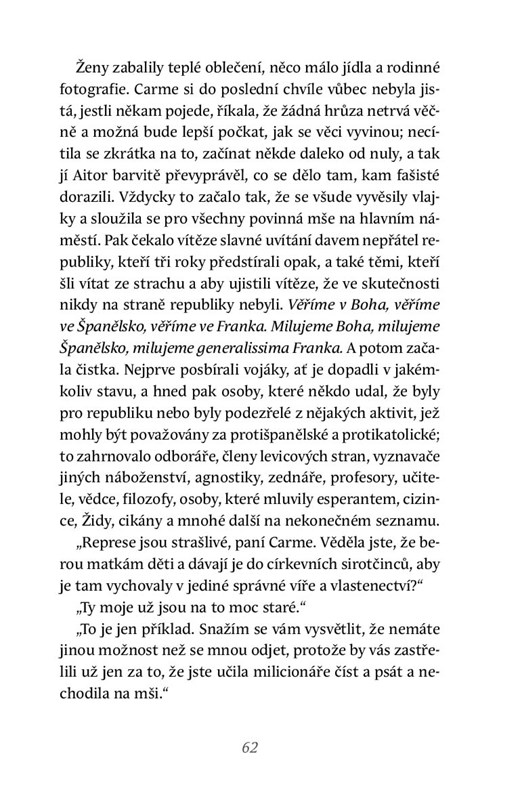 Koncem třicátých let 20. století se Španělsko propadá do chaosu občanské války. Na útěku před stoupenci generála Franka se ocitne i mladá těhotná vdova Roser a Víctor Dalmau, armádní lékař a bratr jejího zesnulého manžela. Aby přežili, musí udělat něco, po čem ani jeden netouží – uzavřít sňatek. Spolu se dvěma tisíci dalších uprchlíků se na lodi vydávají do Chile, kde hodlají začít nový život. I přes svoji složitou situaci se nevzdávají naděje. Uvidí ještě někdy svou rodnou zemi svobodnou?