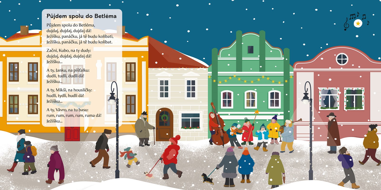 Nalaďte se s námi na kouzelnou sváteční atmosféru: vyberte si z pětice krásných vánočních melodií. Stačí, když zmáčknete tlačítko na stránkách knihy a píseň se rozezní.