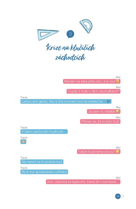 Když se o ni Travis konečně začne zajímat, je to v tu nejméně vhodnou chvíli. Mei je nemocná a polibek, o kterém sní od doby, co si přestala hrát s panenkami, musí ještě chvíli počkat. Zatím můžou randit tak maximálně přes messenger. Bude ale skutečné rande nakonec lepší než to virtuální? A dočká se líbání s motýlky v břiše, ohňostrojem a zemětřesením?