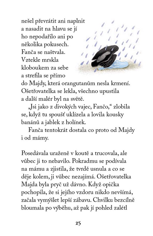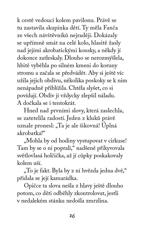 Zatím si nejvíc legrace užívá s Fančou, malou samičkou orangutana. Když neposedná Fanča způsobí další z mnoha malérů a dostane vyhubováno, rozhodne se utéct k cirkusu. Celá zahrada je rázem na nohou a po uprchlé Fanče se rozjede pátrání. Podaří se jim opičku nalézt a přimět k návratu do zoo dřív, než se jí přihodí něco zlého?