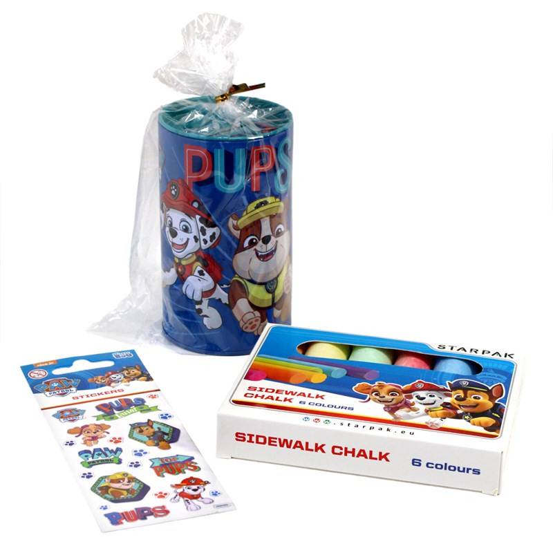 Odvážné tlapky vyrážejí do akce! Zažijte spoustu báječných dobrodružství se záchranářskými štěňaty z Adventure Bay a senzačním kufříkem plným překvapení a dárků! Najdete v něm knížku pohádek Hvězdné tlapky s příhodami oblíbených hrdinů, hravý sešit s omalovánkami a úkoly Omalovánková zábava, veselé křídy, pestrobarevné samolepky a praktickou pokladničku.