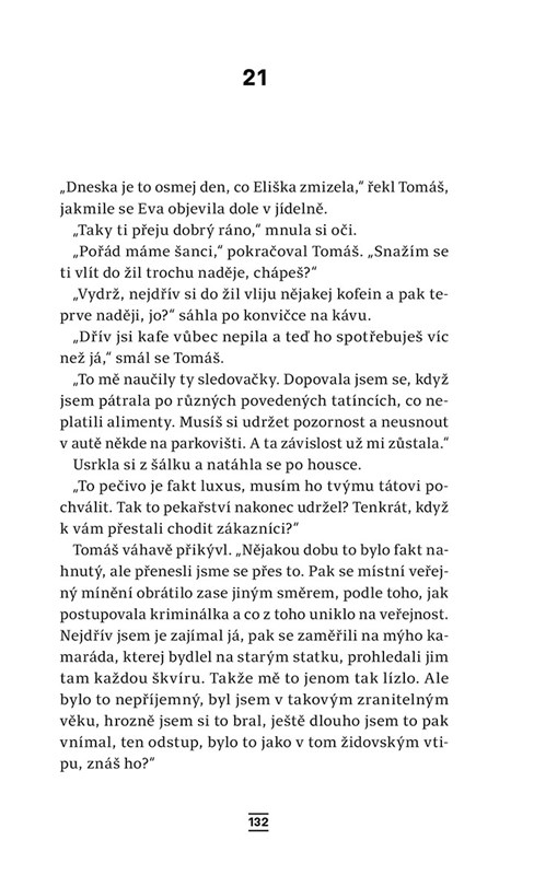 Tomáš Volf se opět setkává s Evou Černou, kterou přivede pátrání po pohřešované Elišce do jeho rodiště. Dívka způsobila tragédii, utekla a vše nasvědčuje tomu, že si chce ublížit. Vyšetřování však otevírá staré rány místních obyvatel. Tomáš se vrací k létu, které chtěl navždy vytěsnit z paměti. Jenže právě jeho vzpomínky mohou být jedinou šancí k nalezení zmizelé. Čas neúprosně běží a současnost až nepříjemně připomíná patnáct let staré události.
