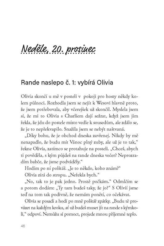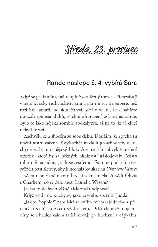 Sophie si k Vánocům přeje jedinou věc - aby ji rodiče pořád tak nehlídali. Ti se chystají navštívit její sestru, takže to vypadá, že bude konečně mít nějaký čas pro sebe (čti: na randíčka se svým klukem). Jenže se ukáže, že on by si dal od jejich vztahu raději pauzu. Sophie se se zlomeným srdcem uchýlí k prarodičům, jejichž dům je plný spousty rodinných příslušníků, kteří tam přijeli na vánoční prázdniny. A babička vymyslí (ne úplně super) plán: během následujících deseti dnů vyrazí Sophie na deset schůzek naslepo, které jí dohodnou její příbuzní. Například skvělá sestřenice Laura, která jí dohodí rande se sexy klukem na exkluzivním undergroundovém večírku. Nebo bláznivá tetička Patrice, která jí zařídí hlavní roli v živém betlému. Kde je taky kluk, co jí sahá po ramena. A křičící mimino. Když se její bývalý kluk vrátí s prosíkem, že by chtěl druhou šanci, je Sophie úplně zmatená. Má totiž pocit, že se možná, ale fakt jenom možná, zamilovala do někoho úplně jiného... Kdo ale rozhodně není volný.