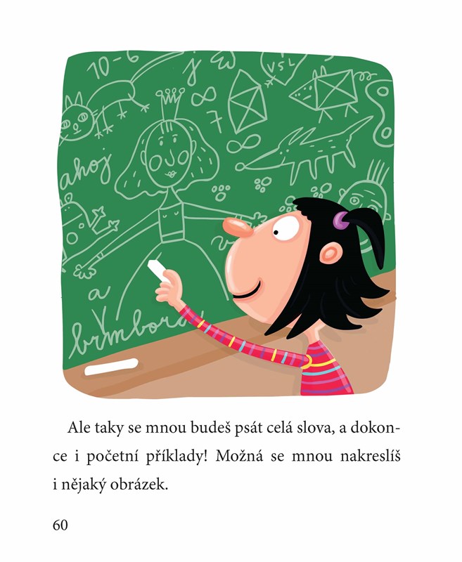 Jedinečná obrázková knížka, která provede čerstvé školačky abecedou a zároveň školním prostředím.
