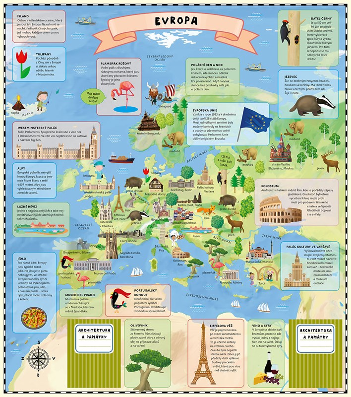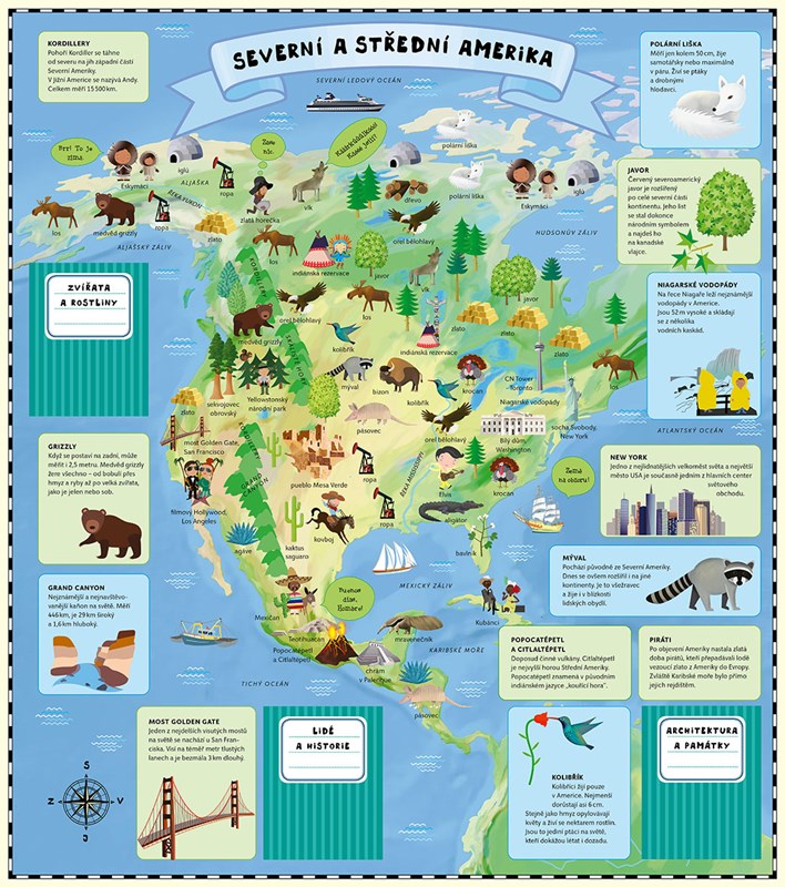 Atlas světa pro děti je určen všem malým cestovatelům, kteří se chtějí dozvědět spoustu zajímavých informací o planetě, na níž žijí. Každému kontinentu se věnuje zvláštní kapitola a především velká rozkládací mapa, na které je pomocí barevných ilustrací přehledně zobrazeno, co je pro daný kontinent nejtypičtější. Na čtenáře čeká velké množství informací o obyvatelích jednotlivých částí světa, o zvířatech, která zde žijí, o rostlinách, jež tu rostou, ale i o místní architektuře, lidových tradicích a kultuře vůbec.