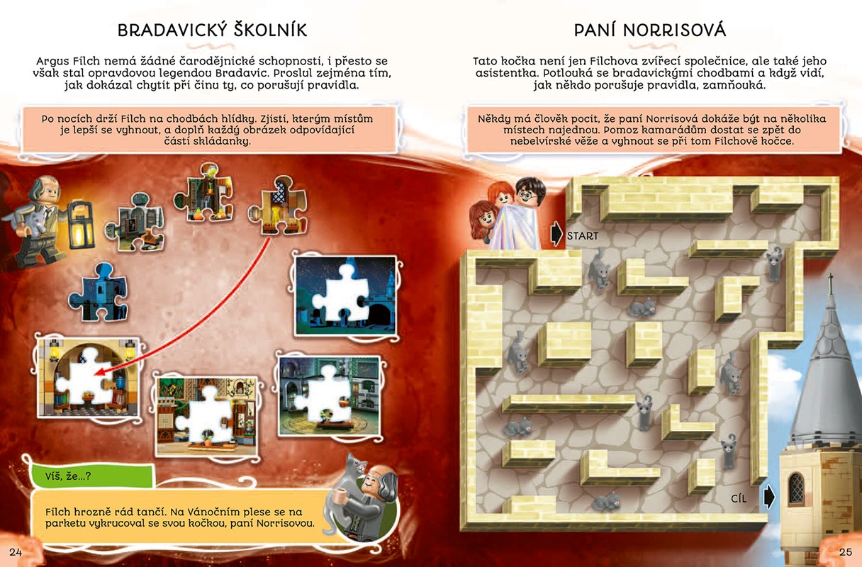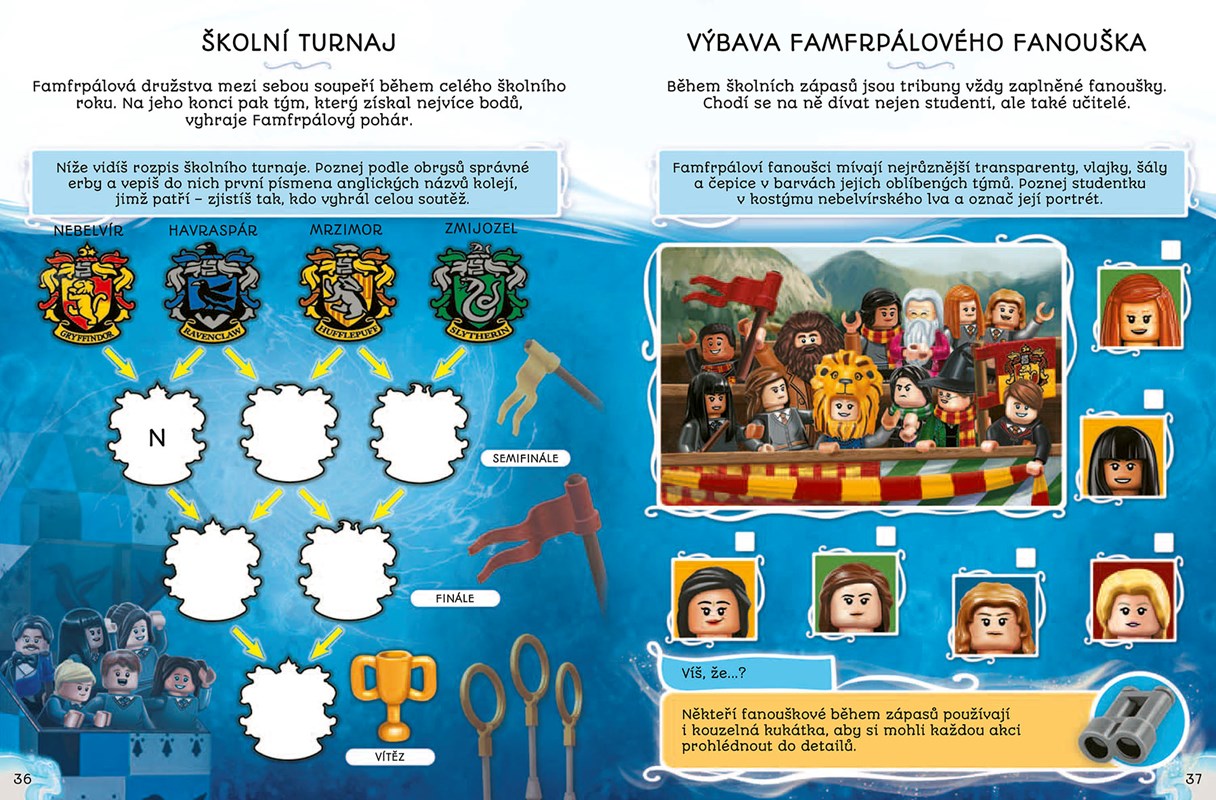 Objev díky této magické knize nabité dobrodružstvím tajemství Bradavické školy čar a kouzel! Pomoz hrdinům ze světa LEGO® Harry Potter™ projít záludnými bludišti a vyřešit úkoly napěchované zaklínadly. A vyplň si i několik testů, kde mimo jiné zjistíš, do které bradavické koleje by tě zařadil Moudrý klobouk.