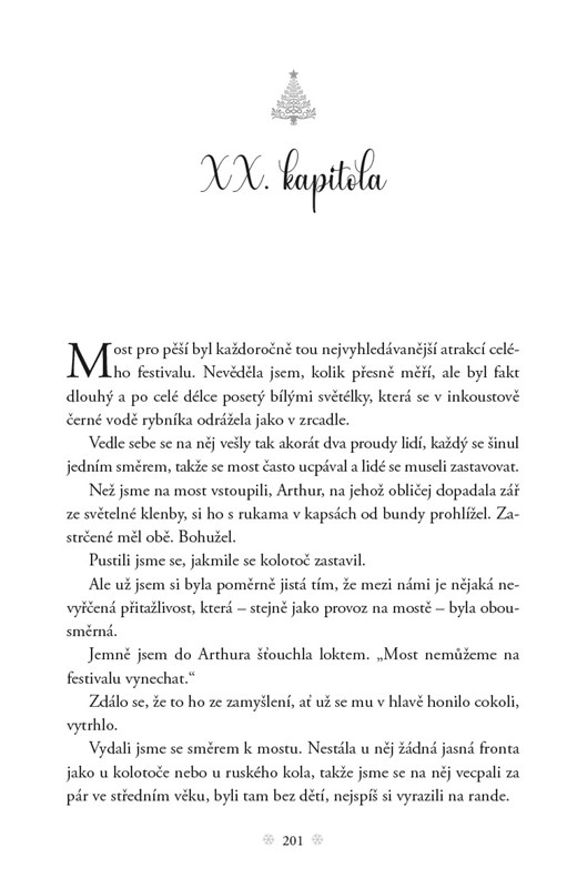 Když Finley přijela zpátky z internátní školy do svého rodného městečka Christmas, očekávala, že všechno bude při starém. V předchozích šestnácti letech se tam nikdy nic nezměnilo. Teď se však při návratu dozví, že její nejlepší kamarádka randí s jejím bývalým klukem, její rodiče se rozvádějí a holka, kterou nesnáší, brigádničí v penzionu její babičky. A rozhodně nečekala, že v tomhle podniku narazí na svého spolužáka, kterého tak trochu přesvědčila, že městečko Christmas je synonymem malebné sváteční idylky. Teď je na ní, aby si z něj odvezl všechny zážitky, které mu slíbila. Dokáže vánoční atmosféru plnou lásky vykouzlit i sama pro sebe?