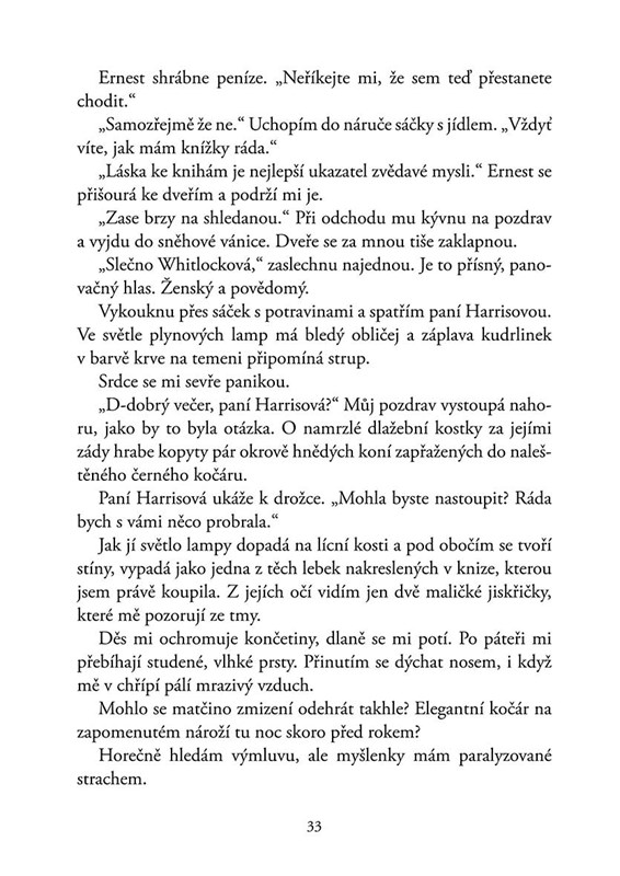 Jedné mrazivé noci však Myru navštíví guvernérova žena a žádá nemožné – vzkřísit pomocí malířské magie svého mrtvého syna Willa. Pokud to Myra neudělá, udá ji.
