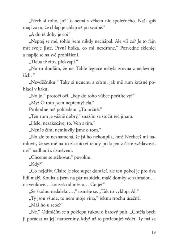 Alison se vidí v malém domečku, o kterém vždycky snila. Se ženou, do které se bezhlavě zamilovala, a ideálně se vším ostatním, co k tomu patří. Jenže Sam má jiné starosti a to poslední, na co by chtěla myslet, je svatba a děti. Proto se rozhodne udělat něco, co ještě nikdy předtím neudělala – začne o svých pocitech mluvit.