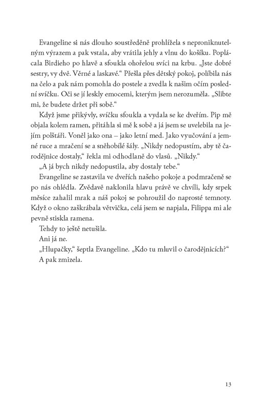 Musím vás upozornit, že autorka tak nějak počítá s tím, že máte její knihy přečtené a spíše vás rovnou hodí do toho světa, než aby vám ho představovala. Věřím, že pro fanoušky Holubice a hada mohlo být skvělé zase sledovat osudy jejich oblíbených hrdinů, ale já jsem prvních 100 stran moc nechápala která bije. Plus teda počítejte s tím, že si můžete vyspoilerovat, jak to v předešlé sérii vlastně všechno dopadlo.