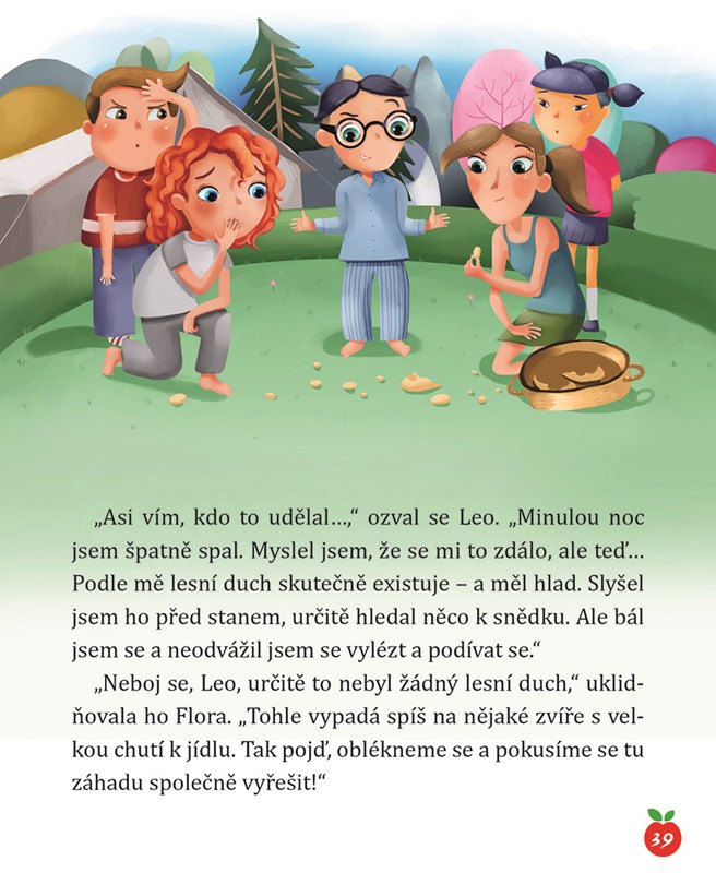 Sourozenci Flora a Leo jsou nadšení. Poprvé v životě budou tábořit v lese! V batohu už mají baterku, láhev na vodu, turistické boty – tak hurá za dobrodružstvím.