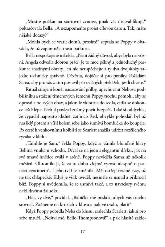 Poppy a její poník Neb se účastní své první skokové soutěže a Poppy je z toho pořádně nervózní. Proto si ani nevšimne, když v polovině přehlídky zmizí jedna ze soupeřek – nafoukaná dívka z bohaté rodiny Georgia Canningová. Zanedlouho poté se ztratí i Poppyin milovaný oslík Chester a dívka si uvědomí, že je něco strašně špatně. Mají spolu obě zmizení něco společného? Dokáže Poppy rozluštit stopy dřív, než bude pozdě?