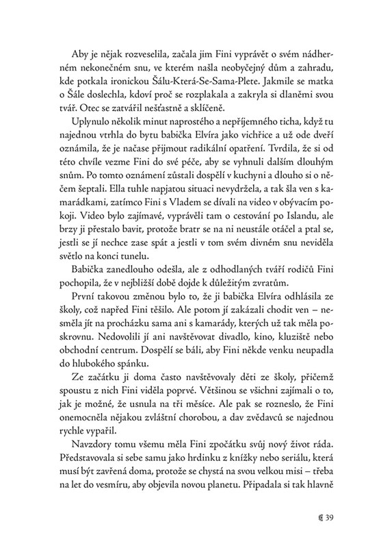 Již od dětství upadá Finista do dlouhého spánku, který trvá i několik dní. Nikdo z jejího okolí neví, co se s ní během té doby děje ani proč k tomu dochází. Místo, kam se v průběhu spaní přenáší, se nazývá Snorealita a ona zde dokáže kouzlit.