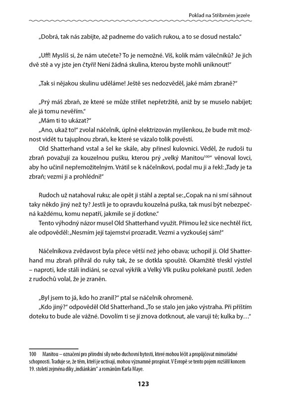 Karel May je známý především jako autor dobrodružných románů. Jeden z nejslavnějších z nich vypráví o dobrodružné cestě za starým indiánským pokladem, který je uložen uprostřed Stříbrného jezera. Mezi hlavními postavami nechybí neporazitelný Old Shatterhand ani jeho rudý bratr Vinnetou, kteří se spolu s dalšími hrdiny Divokého západu postaví proti padouchovi Brinkleymu a jeho trampské bandě.