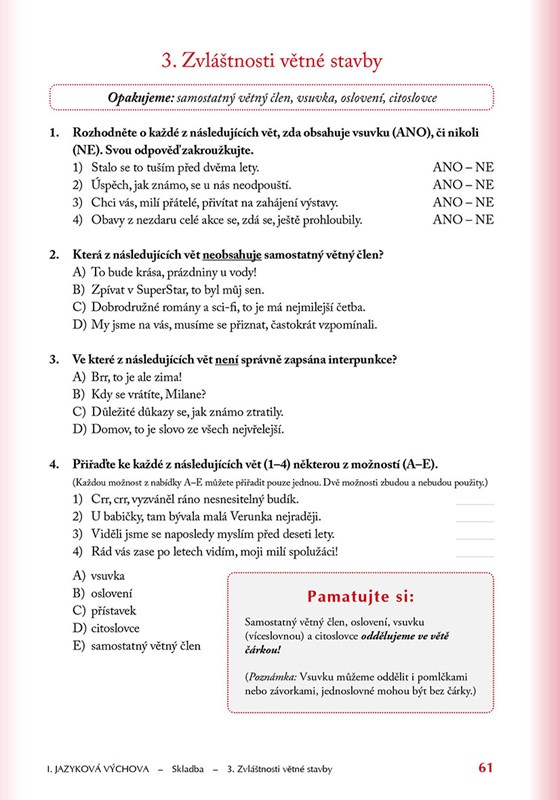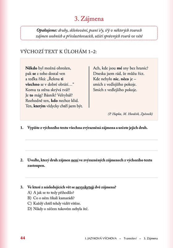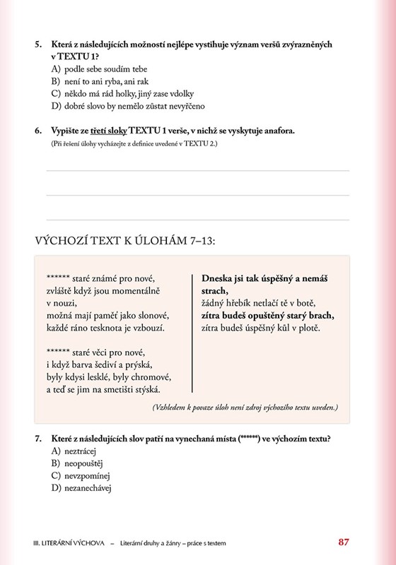 Kniha Přijímací zkoušky na střední školy – český jazyk umožní žákům 9. ročníků a dalším uchazečům o studium v maturitních oborech cílenou přípravu na úspěšné zvládnutí didaktického testu, který je součástí jednotných přijímacích zkoušek na střední školy.