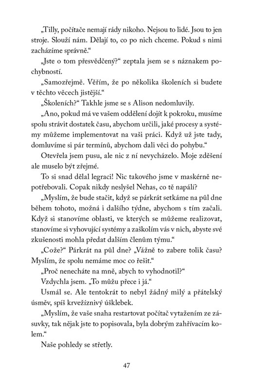 Tilly pracuje jako maskérka v opeře a v předvánočním období si užívá společné chvíle se snoubencem Felixem. Zdá se, že všechno je v naprostém pořádku. Pak ale dojde na přešlap se zavirovaným e-mailem, který její život obrátí naruby. Tilly se setká s novým ajťákem Marcusem, který má potřebu neustále ji poučovat. Zatímco ona miluje operu, on dává přednost operačním systémům. I když se jejich světy míjejí, jakmile se Tillyin soukromý i pracovní život začne hroutit, Marcus je pro ni překvapivě tou největší oporou. Vánoce jsou za dveřmi, Tilly si musí ujasnit životní priority a taky vyrazit na nákupy. Nejlepší vánoční dárek je totiž ten, o kterém nevíte, že ho chcete, ale na první pohled si ho zamilujete.