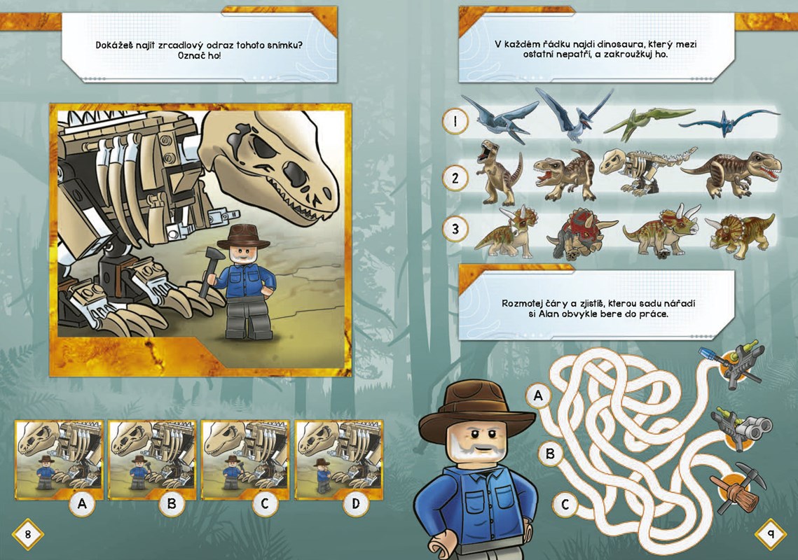 Dr. Alan Grant, jeden z největších expertů na dinosaury, je zpět! Podaří se mu opět vyváznout ze setkání s těmito obrovskými ještěry bez úhony? Jak si povede ve světě, v němž dinosauři žijí hned vedle lidí? Vyřeš hlavolamy, přečti si komiks, pohraj si s minifigurkou a zjisti, jak se věci doopravdy mají!