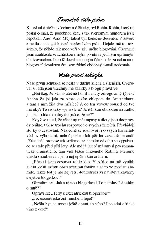 Ester na svém blogu vtipně glosuje svůj život single třicítky. Doufá, že si její články jednou přečte její psychoterapeut, do kterého je tajně zamilovaná. Je cit k němu skutečný, nebo se jedná o pouhé platonické pobláznění? Romantický román s notnou dávkou sebeironie vypráví o hledání lásky i sebe sama.