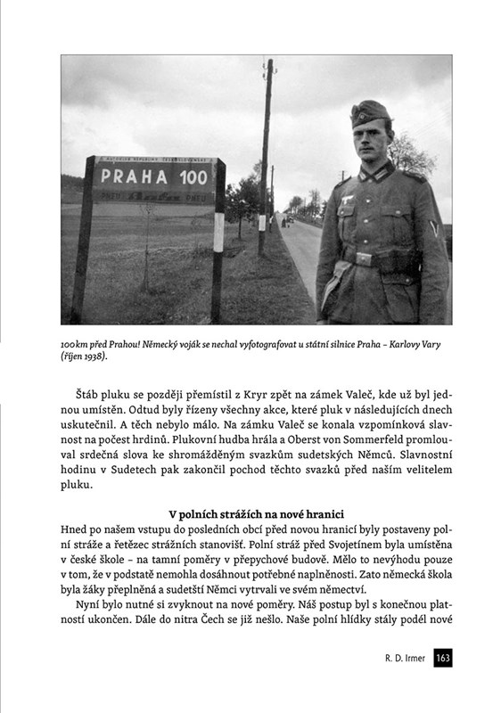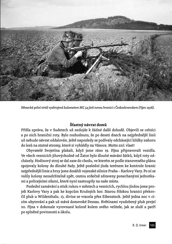 Kniha Sudety 1938 přibližuje toto krizové období pohledem důstojníků německé Wehrmacht. Jejich poznatky a postřehy sepsané bezprostředně po návratu z nasazení v Sudetech představují velmi zajímavé svědectví nejen o mírovém obsazení odstoupených oblastí, ale i o utajovaných válečných přípravách na přepadení Československa. Kromě bohatého obrazového doprovodu, tvořeného převážně doposud nepublikovanými a mnohdy unikátními fotografiemi, je kniha doplněna dalšími zajímavostmi, jako jsou ukázky tajných předpisů a pomůcek, které připravil německý generální štáb pro potřeby války proti Československu.