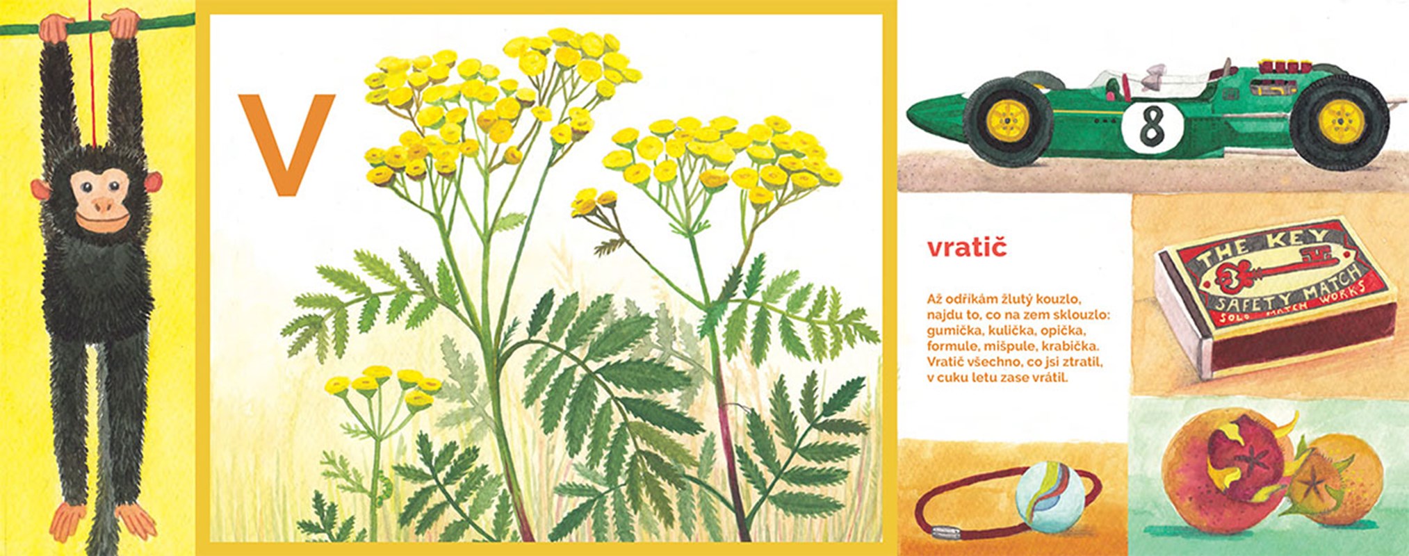 Výtvarnice Tereza Marianová se v zimě zapálila pro atlasy a herbáře a snila o květinách, když se s kočárem prodírala sněhem. Malovat mohla, jen když malý herbalista spal. Přesto objevila, že ve skryté síti kořenů, v chlorofylu listů a vábení květů koluje nejedna legrační básnička. Nacházejte s námi příběhy schované v okvětích i stonkoví, ve folklóru českých bylin. Až k nim v létě ulehnete na prosluněné voňavé mezi, můžete se s nimi chichotat.