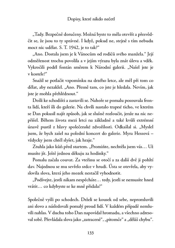 O sedmdesát let později vhazuje Dan do schránky poslední dopis. Jeden z mnoha, který Stelle poslal na adresu místa, kde spolu měli po válce začít žít, a na které mu nikdy neodpověděla. Otevírá ho však Jess, mladá dívka, která v opuštěném domě hledá úkryt před svým násilnickým přítelem. Když si přečte Danovy nádherné dopisy, rozhodne se, že se ho pokusí vyhledat a pomůže mu jeho ztracenou lásku najít…