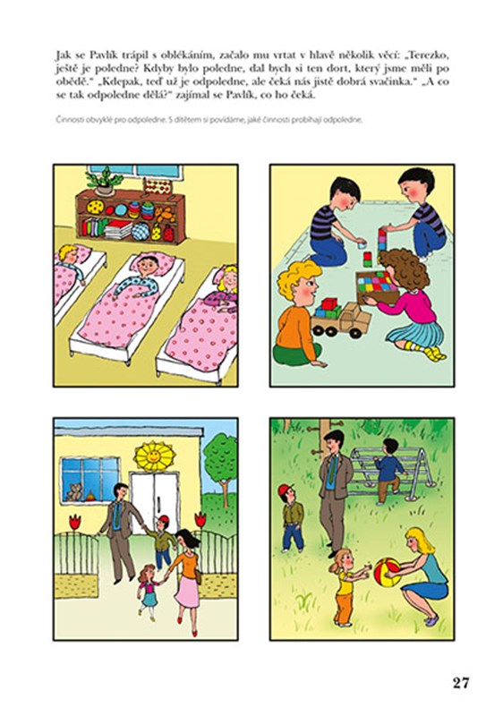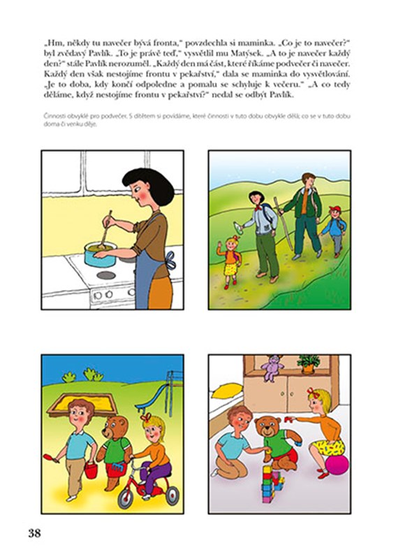 Publikace je určena předškolním dětem k rozvoji časové orientace a prevenci potíží ve čtení, psaní, matematice a obtíží v získávání studijních dovedností plynoucích z nedostatečně rozvinuté časové orientace, vnímání posloupnosti a následnosti dějů, organizace činností.