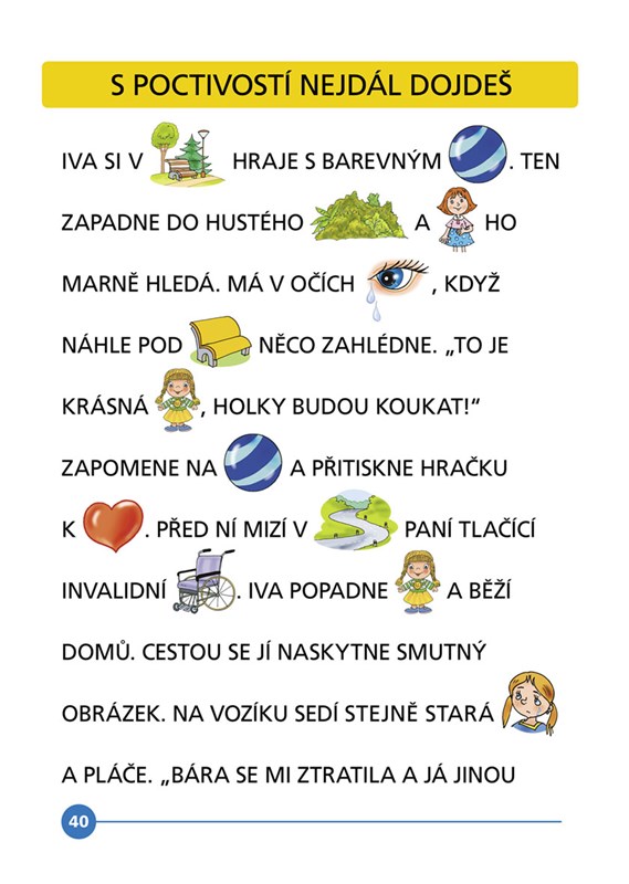 kombinace textů a obrázků, doplňování slov za obrázky