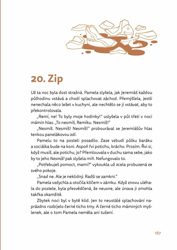Ivona Březinová citlivě, ale s nezbytným nadhledem vypráví příběh autistického chlapce a jeho okolí, které se s jeho poruchou musí dennodenně vyrovnávat. Knížka s výtečnými ilustracemi Tomáše Kučerovského dětem ukazuje, že s poruchou autistického spektra se dá žít a že nakonec je ze všeho nejdůležitější jako vždycky láska a dostatek porozumění.