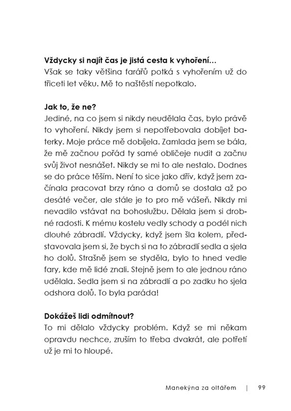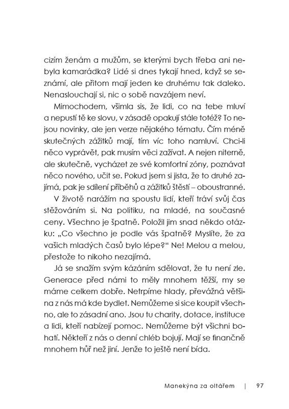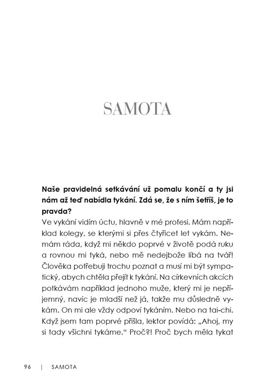 Proč radši slouží pohřby než svatby? Jak se sama vypořádává se stárnutím a odchodem milovaných lidí? Jaký byl život manekýn v totalitě? Co jí dnes trápí a dává naději? A zkusila někdy vymýtat zlé duchy? O tom všem a mnohém dalším si povídala s Mirkou Zlatníkovu, autorkou televizní série a knih o Marii Terezii a scénáristkou filmu Teorie tygra nebo Kurz manželské touhy a její dcerou Adélou Vopavovou.
