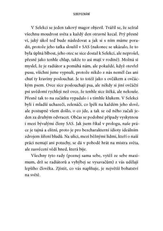 Po čtyřech letech strávených v Parašutistickém pluku, deseti letech ve Speciální letecké službě (SAS) a dvou výstupech na Everest je Jay Morton ten nejpovolanější k odhalení, jak se stát nejlepším z nejlepších. Na základě mimořádných zkušeností v armádě sestavil praktické lekce a rady, které vám pomohou s nastavením mysli, disciplínou či vytrvalostí. Autor na vlastní kůži zjistil, že vojenská služba rozvíjí schopnosti, o kterých se nám ani nesnilo a které lze aplikovat na náš každodenní život. Jsme náchylní se podceňovat, ale fyzická a duševní vytrvalost a odolnost – stejně jako uvědomění si vlastního potenciálu – nám pomohou přinést na světlo to nejlepší z nás.