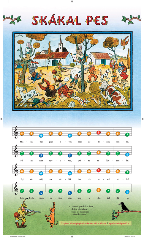 Tradiční notový záznam nahrazují číslované barevné noty, které jsou pro děti srozumitelnější a písničky tak snadno zvládnout zahrát samy.