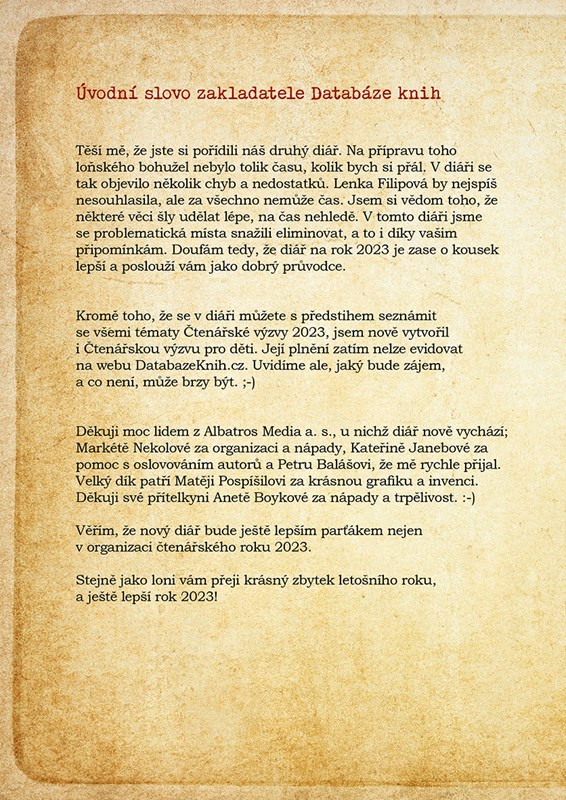 Čtenářský diář 2023 Databáze knih – nejlepší parťák nejen v organizaci čtenářského roku 2023!