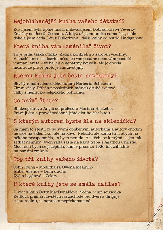 Bonusem je tentokrát čtenářská anketa, v níž na dotazy ohledně své oblíbené četby odpovídají významní čeští autoři (Alena Mornštajnová, Kateřina Tučková, Bianca Bellová, Petra Dvořáková, Michaela Klevisová, Petra Soukupová, Eva Kollerová – Střihavková, Jáchym Topol, Michal Viewegh, Miloš Urban, Ladislav Zibura, Josef Formánek a na závěr dokonce i jedna oblíbená autorka zahraniční.