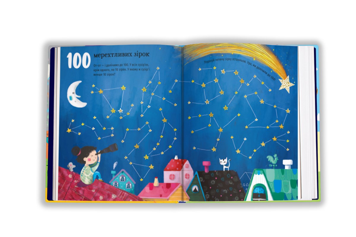 Jeden kulatý měsíc, dva malí pejsci, tři červené autobusy, čtyři zvláštní domečky... Díky této velkoformátové publikaci s roztomilými ilustracemi je počítání do sta zábava. Děti na každé stránce najdou nejrůznější tvory i věci: kočky, auta, květiny, zpěvné ptáky, třpytivé hvězdy nebo třeba kapky deště. Učení hrou je ta nejlepší cesta – proto je tato knížka jako stvořená k tomu, abyste svého potomka uvedli do světa čísel a také ho naučili rozlišovat barvy.