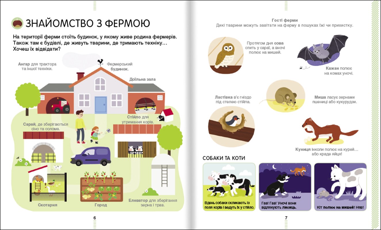 Na farmě se celý den něco děje – a rušno je tu někdy i v noci. Vydejte se s touto encyklopedií plnou úkolů prozkoumat skutečný život farmářů! Kdo na farmě bydlí a co se tu pěstuje? Jaké produkty se tu vyrábí? Kteří pracovníci se starají o zvířata a rostliny? A jak se fungování farmy mění v průběhu roku? Malí zvídaví čtenáři se prostřednictvím krátkých ilustrovaných příběhů dozvědí vše, co je kdy o životě na farmě zajímalo.