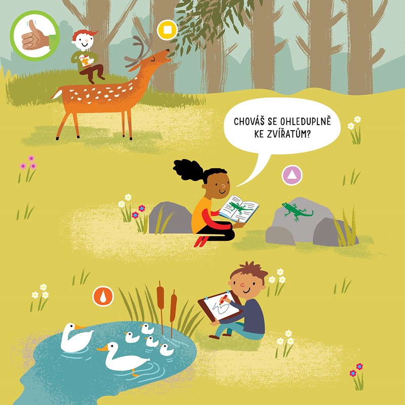 Určitě už víš, že k přírodě se máš chovat ohleduplně. Co přesně to ale znamená a proč musíme některá pravidla dodržovat? Tato knížka ti ukáže, jak se chovat venku, jak si počínat v kontaktu se zvířaty, a dokonce i co dobrého můžeš udělat pro zdraví naší planety. Prohlédni si jednotlivé situace a zkus vymyslet, jak by se v nich dalo zachovat lépe. Pod odklápěcími stránkami pak najdeš správné řešení.