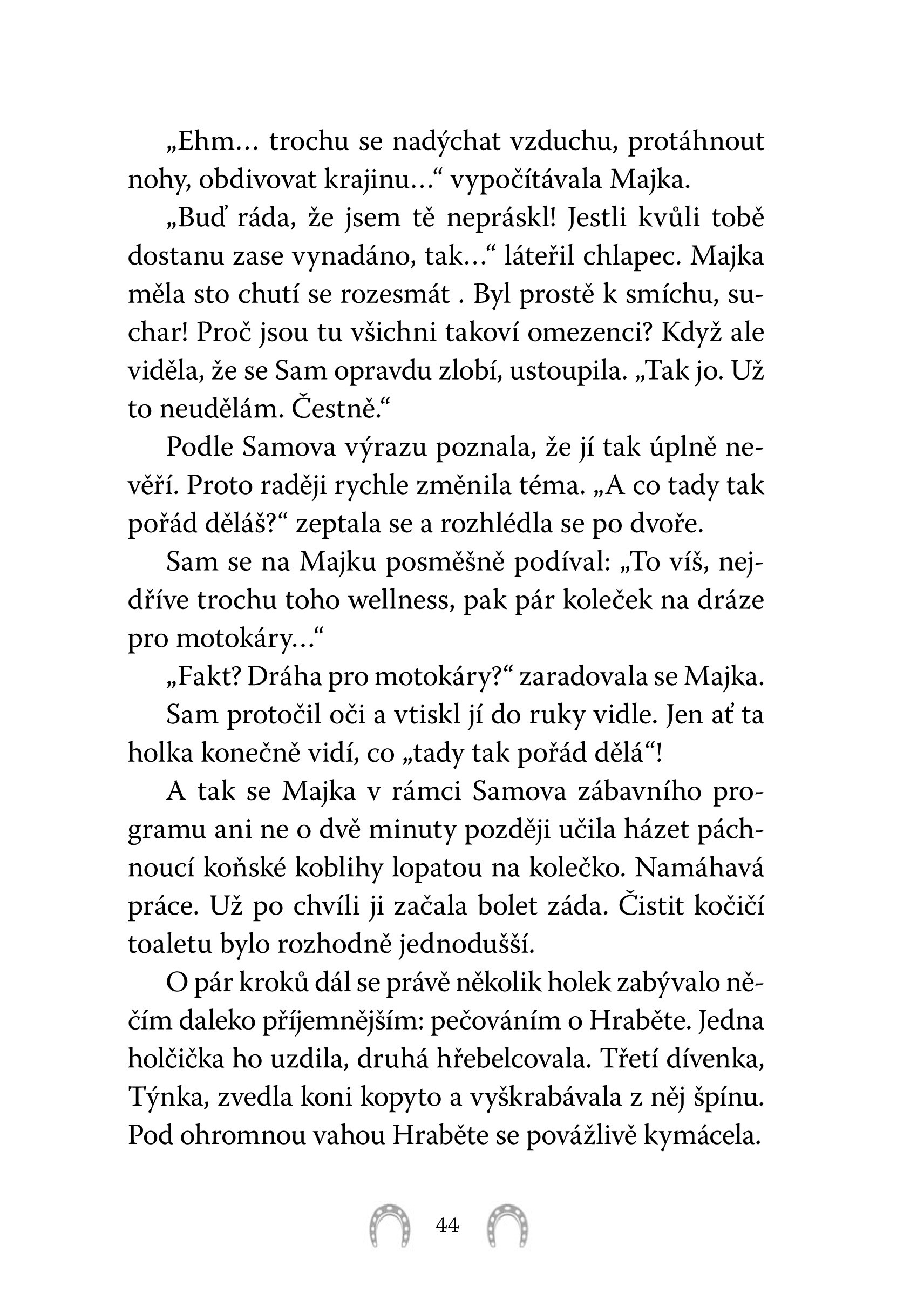 Jenže nezkrotného koně chtějí utratit. Jestli ho chce Majka zachránit, musí tvrdě trénovat a především poznat samu sebe.